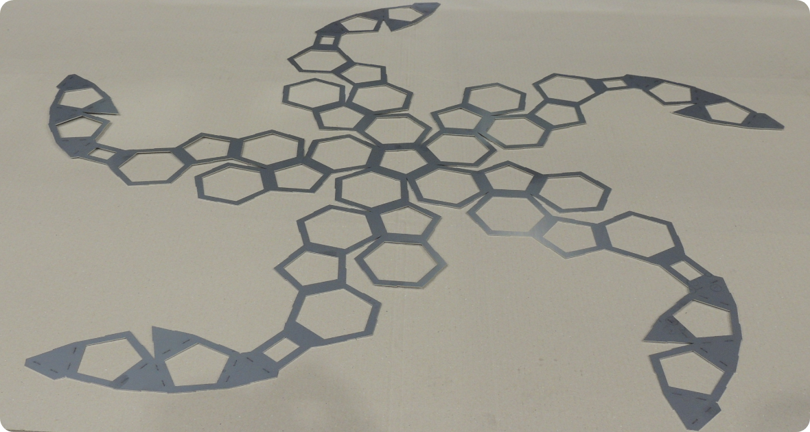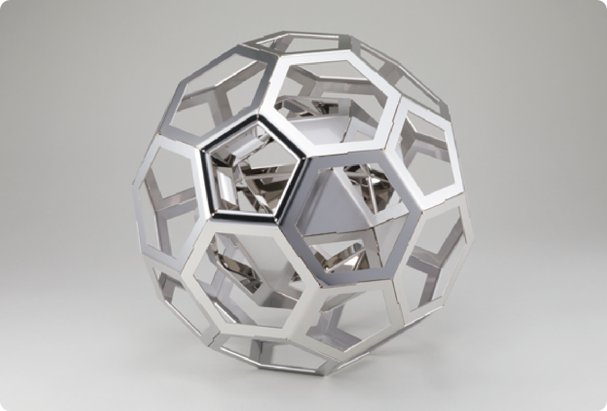 この製品は曲げ加工のみで32面体の中にもう1つの32面体が入っています。