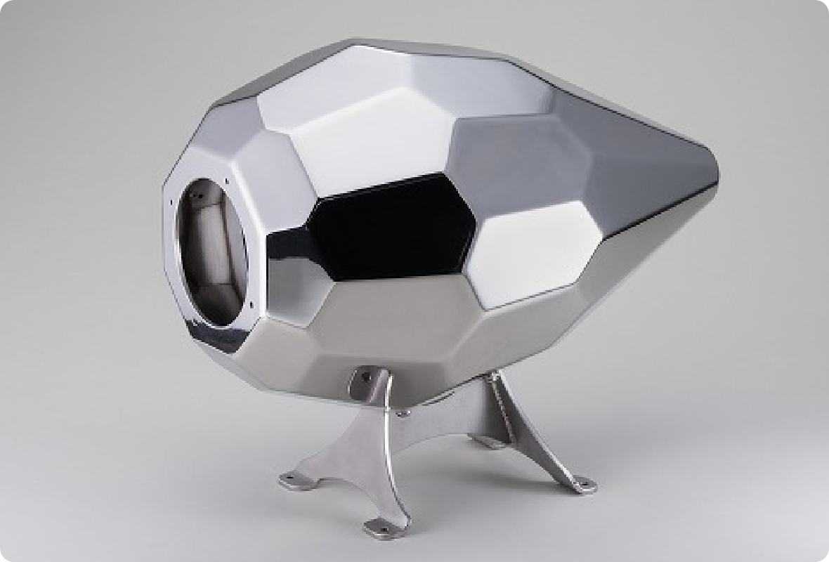 本来なら3~4パーツに分割して加工するのが一般的ですが、あえてパーツの数を増やさず、曲げのみでどこまで加工できるかを追及した作品です。